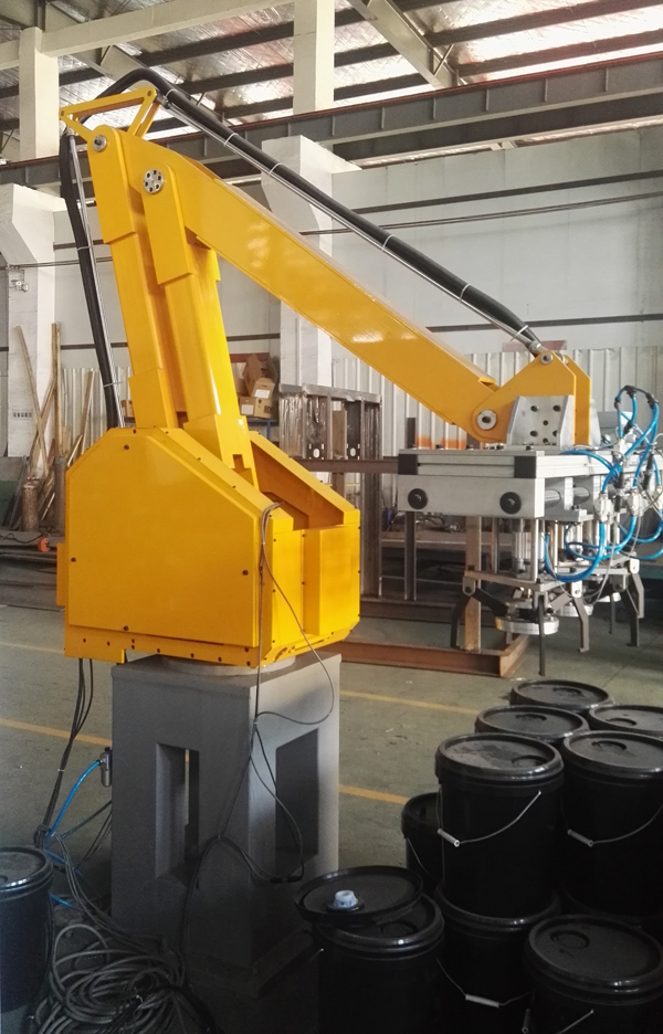 該碼垛專用機器人為本公司自制設備,用于箱,桶的自動碼垛,速度為中速,碼垛速度為